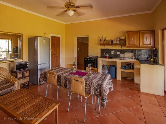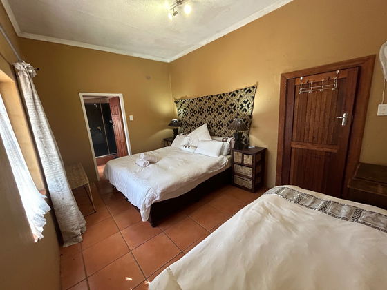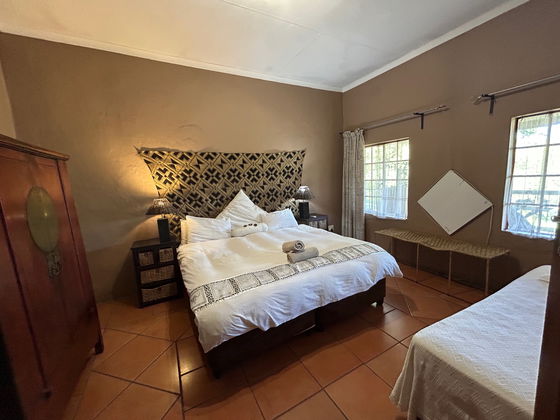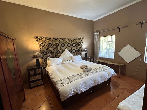 This charming unit features two bedrooms with en-suite bathrooms, a fully equipped open-plan kitchenette, and a comfortable lounge and dining area. The bedrooms are thoughtfully furnished with either single beds or a king-size bed to suit your needs. Step out onto the spacious verandah, complete with private braai facilities, and enjoy the perfect setting to relax and soak in the bushveld atmosphere.